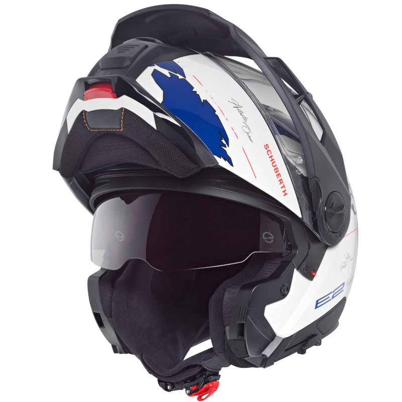 Schuberth E2 Der SCHUBERTH E2 ist die zweite Generation von SCHUBERTH Adventure-Helmen und damit ein weiterer Helm im SCHUBERTH-Sortiment, der nicht nur über die P/J-Doppelhomologation verfügt, sondern auch der neuen ECE 22.06 Norm entspricht. Der SCHUBERTH E2 ist die perfekte Mischung zwischen dem Komfort der berühmten 1EC 1C Klapphelm-Serie und dem aggressiven Aussehen eines Offroad-Helms. Der neue E2 erfüllt alle aktuellen SCHUBERTH Standards in Bezug auf Sicherheit, Aerodynamik und Aeroakustik. |